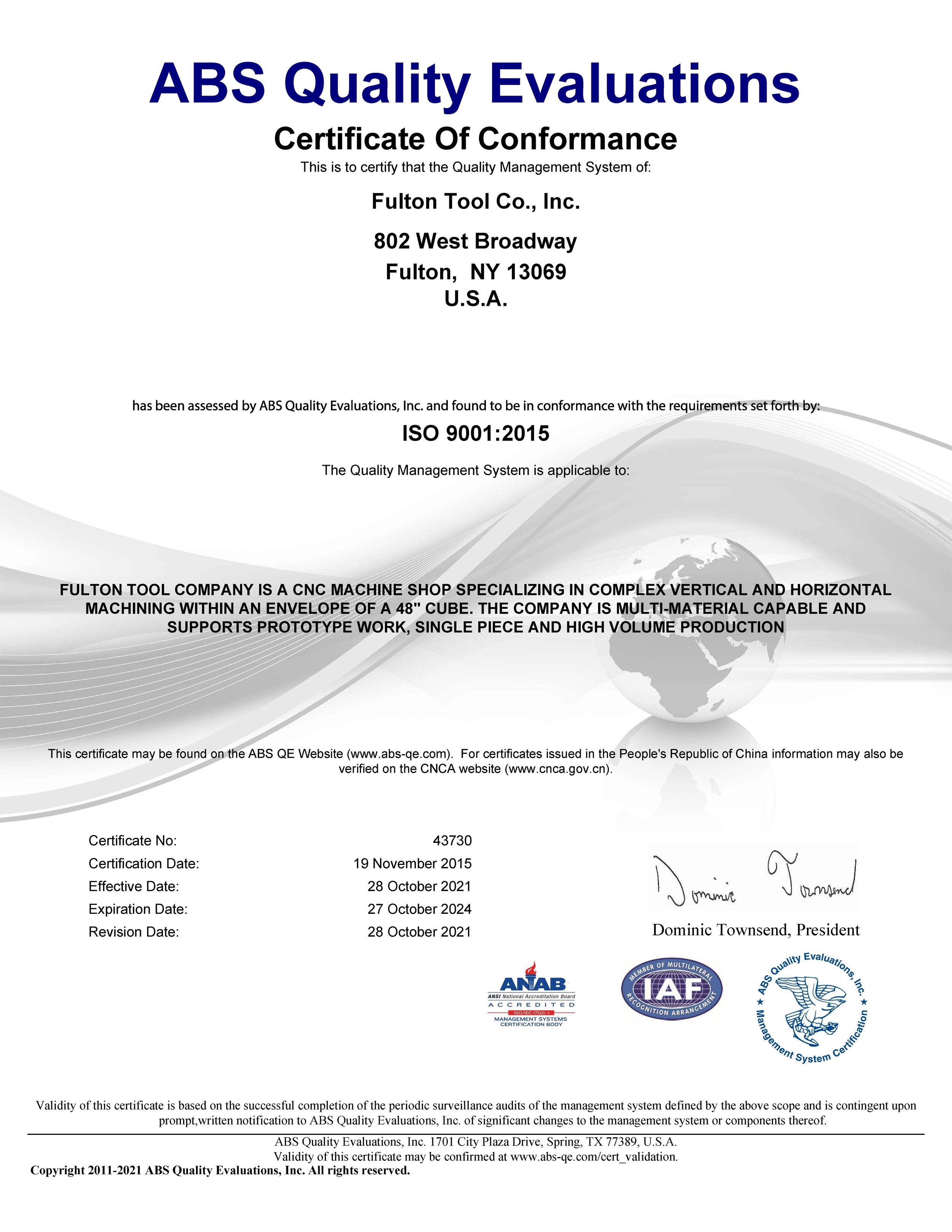 Fulton Tool Co., Inc. welcomes you to become part of our growing customer base. Let us have the opportunity to earn your trust and we will grow with you into the 21st century.